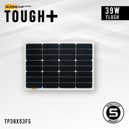 SUNBEAMsystem Tough+ represent the absolute latest technology to be found. Both in the incredible amount of power per surface unit, as well as the longevity compared to other lightweight competitors. The unrivalled power output is safeguarded by our partner Sunpower. The cells inside a Tough+ panel have a stunning efficiency of 23.7% on average, resulting in a 13% higher output ever available ahead of the launch of Tough+.