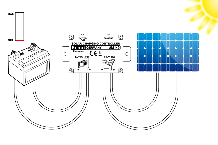 To connect battery and regulator a connection cable with a max. diameter of 1,5mm² should be used. Length should be as small as possible.